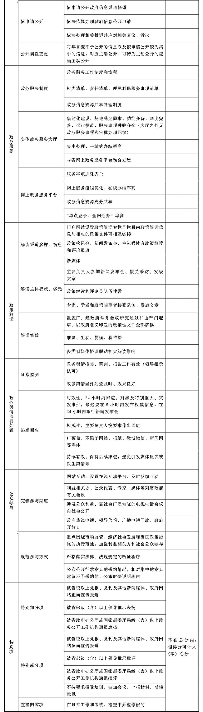 (一)政务公开与政务服务领导小组办公室根据考核内容、年度工作重点和有关要求,制定印发考核实施细则。